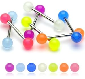 Body Accent? 7 Glow in the dark Acrylic Ball Tongue Ring 14g 316L bar - In Assorted Colors HO295: Amazon